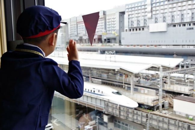 新幹線はもちろん!京都駅に止まる色んな電車が見える限定のお部屋に家族みんなで宿泊。