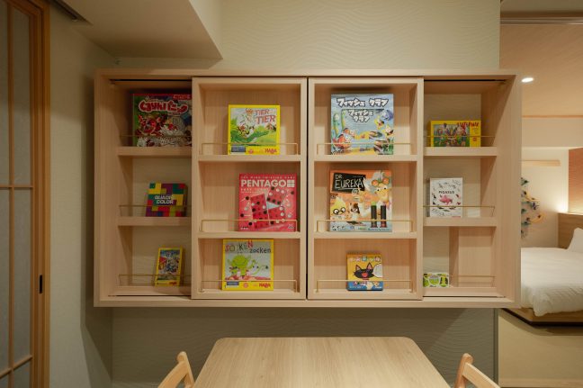 2階ロビー“遊べる縁側”には、日本のボードゲームブームを牽引するボードゲームカフェ「JELLY JELLY CAFE」オーナー白坂翔氏が厳選した130種類以上となる世界中のボードゲームを取り揃え、人数や難易度に合わせたゲームをお楽しみいただけます。また、ボードゲーム作家と開発した『MIMARU大阪 難波STATION』宿泊者限定の専用ゲーム「HOTEL GAMES」は、ロビーフロアと宿泊するお部屋で遊べる8つのゲーム集です。館内に隠された謎を探し解いてまわる大掛かりな謎解きゲームから、くすっと笑える細かな仕掛けまで、ゲストが楽しめる工夫が至るところに散りばめられています。