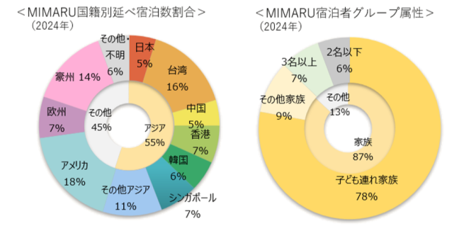 アパートメントホテル「MIMARU」は、キッチン、リビング・ダイニングスペース付きの約40㎡からの広い客室を備え、“みんなで泊まる”を楽しむアパートメントホテルです。 年間40万人を超える宿泊者の約9割が海外ゲスト・ご家族での利用で、子ども連れ家族が多く利用されています。37の国と地域から集まった文化や経験の異なるスタッフがゲストをお迎えし、世界中から訪れる訪日旅行者に、日本での最高の体験をお届けしています。
