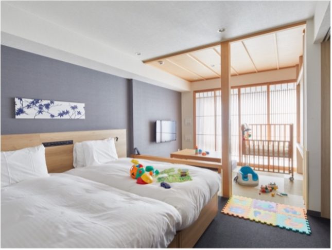 「MIMARU京都 STATION」は、京都駅徒歩2分という好立地で、千本鳥居で知られる伏見稲荷神社や近隣都市の人気社寺へのお参りにも便利です。「ポケモンルーム」は、ベッドの上でお出迎えする巨⼤なカビゴンのぬいぐるみをはじめ、オリジナルデザインのお⽫やカップを備えた特別な空間。窓の外の新幹線を眺めながら車掌遊びができるお部屋もあります。お⼦さまの思い出づくりにもおすすめです。
