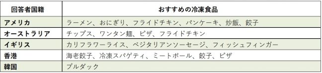 海外でも冷凍食品は便利に活用されているようで、麺類や餃子などはどの国でも重宝されていました。アメリカでは、日本のおにぎりなども人気のようです。