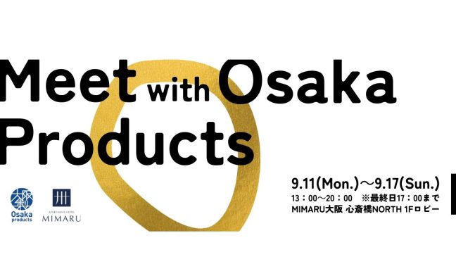 大阪府知事が認定する「大阪製ブランド認定製品」を販売するPOP UP STORE「Meet with Osaka Products」を9月11日(月)から9月17日(日)まで、「MIMARU大阪 心斎橋NORTH」にて開催します。大阪製ブランドとして初の試みとなる宿泊施設でのPOP UP STOREを宿泊客の約9割を海外ゲストが占める「MIMARU」で開催することにより、「大阪」を海外に向けてアピールし、地域と世界をつなぐ取り組みを進めてまいります。