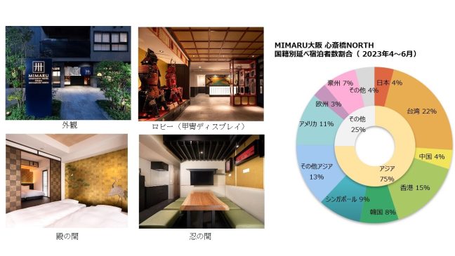 また、東京・大阪・京都で展開するアパートメントホテル「MIMARU」全体では、約9割が海外ゲストの利用となっていますが、大阪エリアでは特に台湾・香港からの訪日客の利用が多く、2023年4月から6月の宿泊者のうち、95%超が海外ゲストとなっています。