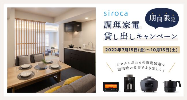 家電メーカー「シロカ」の調理家電を7月15日~10月15日までの期間限定でプレミアム貸出品として貸し出すキャンペーンをMIMARU東京上野EASTにて行います。全室キッチン付きの客室での料理をさらに充実したものにしていただきたいとの思いから、お客さまの心が豊かになるような家電製品をお届けしているシロカの調理家電をプレミアム貸出品としてご用意いたします。