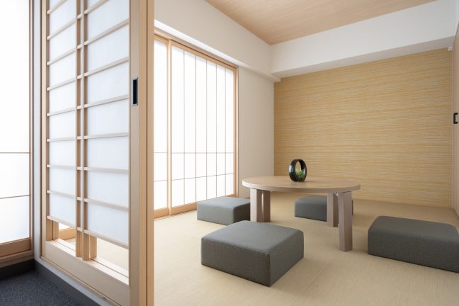 「MIMARU東京 錦糸町」は、上野・浅草・秋葉原などの観光地に近く、新宿・渋谷等のターミナル駅や空港、千葉へのアクセスもよい好立地。駅前には、数多くの商業施設や飲食店、家電量販店があり、両国の下町散策や、スカイツリー観光にも便利です。約40㎡から60㎡、定員4~6名の全82室で構成され、全室キッチン、リビング・ダイニング付き。4人で眠れるキングバンクベッドを備えたお部屋や和室付きタイプもご用意しています。海外ゲストに人気の高い「浮世絵ルーム」は、江戸時代に浮世絵を販売した「絵草子屋(えぞうしや)」に見立てた特別なお部屋。透過性のある障子に東京の街並みを描き、障子を開けると都心方向の空が広がります。