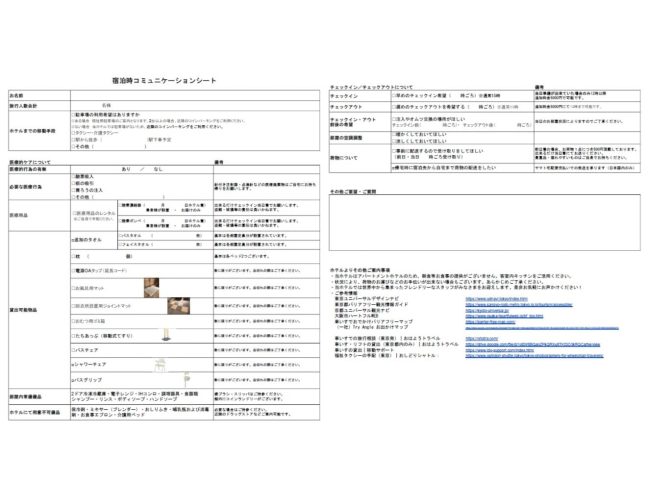 また、ホテルで貸出可能な備品等をご紹介し、ご要望をお伺いする「コミュニケーションシート」をご用意しています。