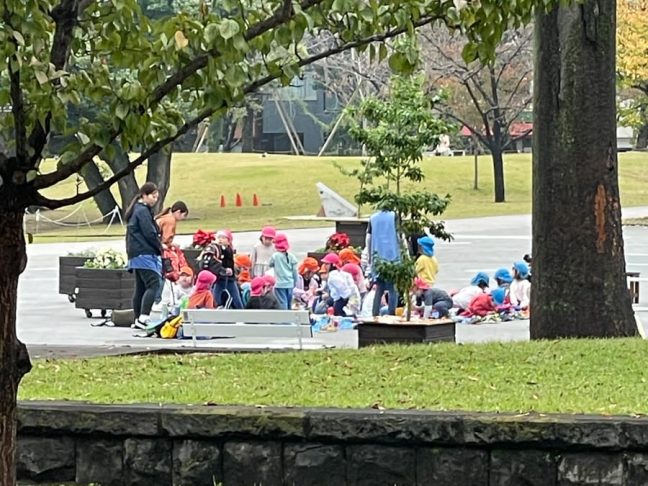 We walked from our hotel across the sumida river to the cafe Land-A, which was just the perfect distance. We had crepes while sitting outside, looking at the river. There were so many photo spots along the way, including a beautiful park where kindergarten students were gathered. It was a very calming and beautiful experience.