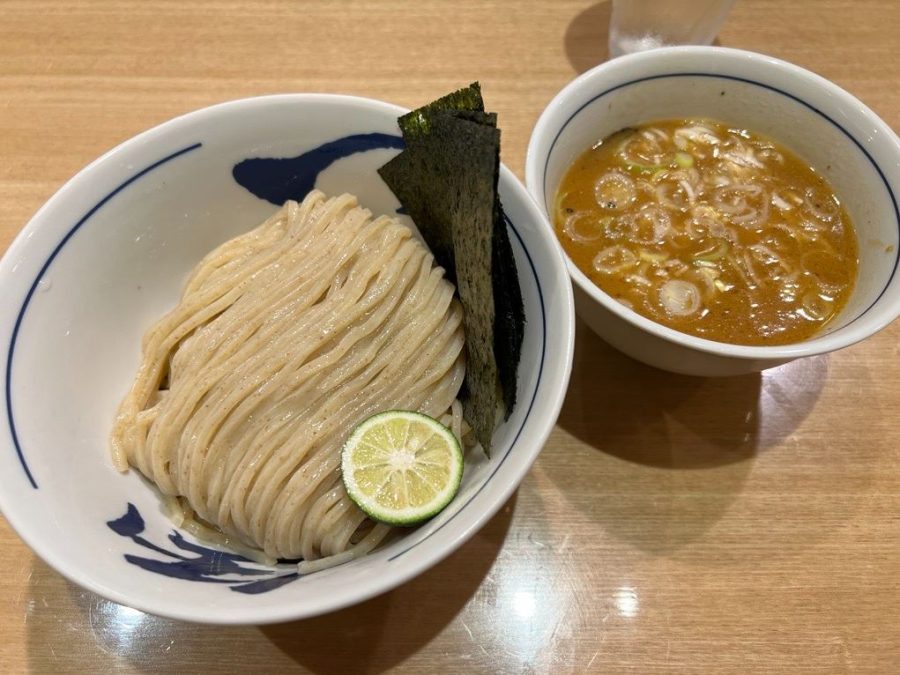 It is like "This is a Japanese ramen restaurant," they only have the counter table. The main "Tsukemen(dip ramen)" is tick noodles which is very satisfying even if it's just regular size. The recommended point is you could squeeze the Sudachi(citrus fruit) directly in to the noodles. Pork bones, chicken, seafood, etc., are used as the base of the soup, but when you squeeze the sudachi, it adds freshness to the soup. So you never get tired of eating it. Pork bones are used in the soup, but I think people who don't like Tonkotsu ramen can also eat it because it doesn't have much smell.