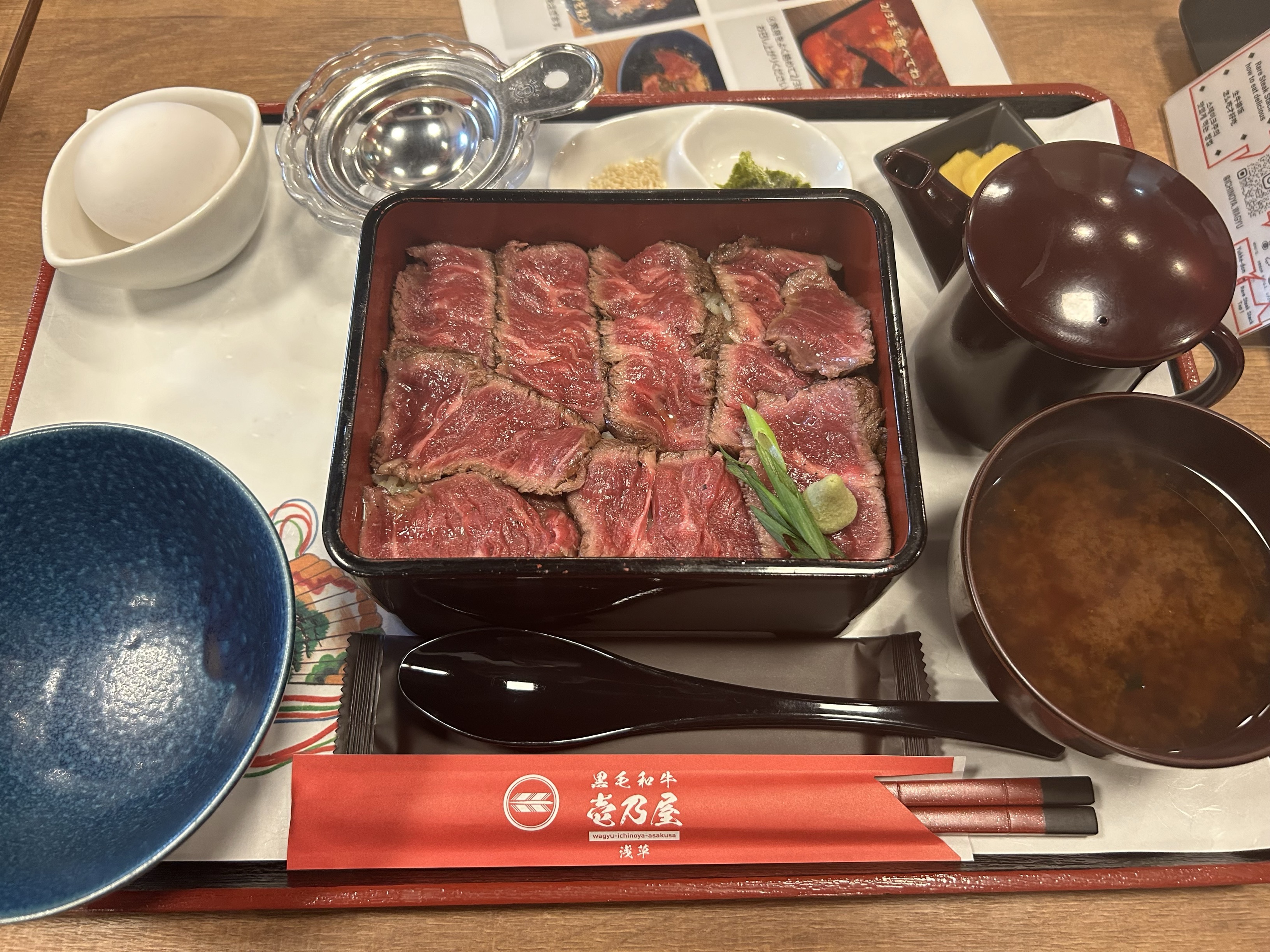 A restaurant specializing in Kuroge Wagyu Steak ( a type of high-grade premium Japanese beef), which guests can enjoy in a bento style ( lunchbox set style). Kuroge Wagyu Ichinoya Asakusa restaurant only uses the highest quality of ingredients including Japan's most famous and delicious brand called 'Koshihikari' for the rice. As for the beef, they use carefully selected domestic wagyu beef that is recommended for the day. Guests can experience the 3 different ways of eating, which is known as Hitsumabushi style (which is often eaten with eel). How to eat: