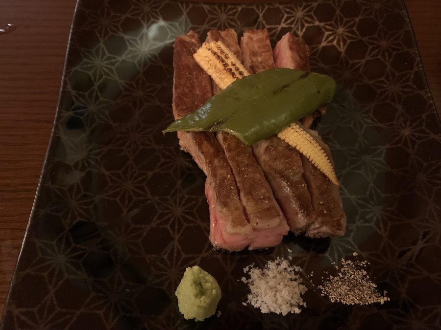 The highlight of the meal, the 100 g Wagyu sirloin steak, was just right for women, but men may find it a little insufficient. I would recommend ordering the abalone or foie gras as an individual item.