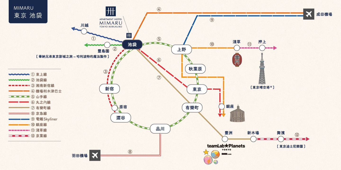 池袋,東京最大繁華街之一,匯聚百貨公司、拉麵店及動漫漫畫店,可盡享購物、美食與娛樂的完美體驗。絕佳的地理位置,讓東京觀光更輕鬆便捷。