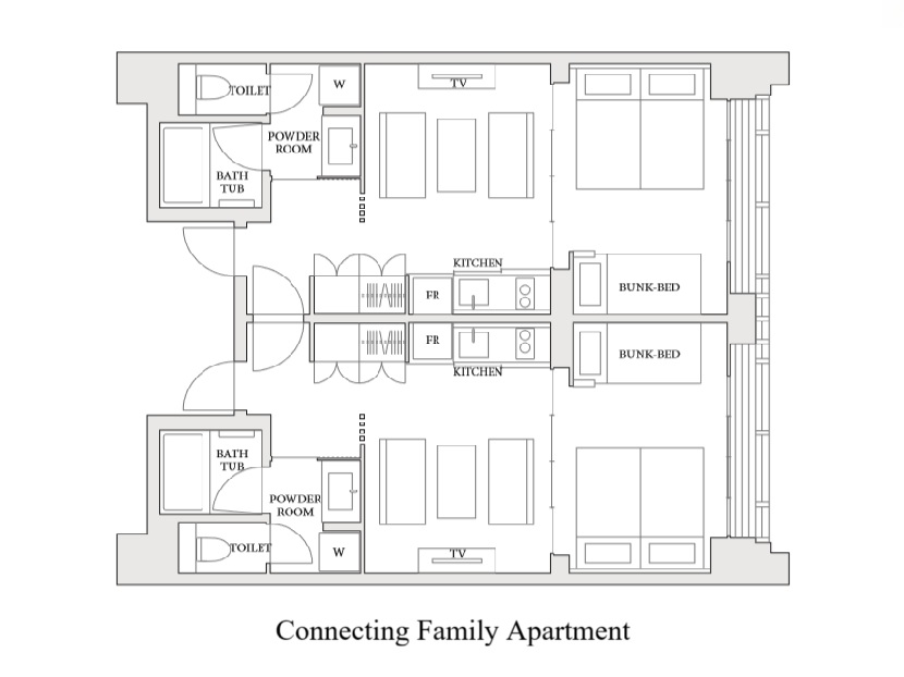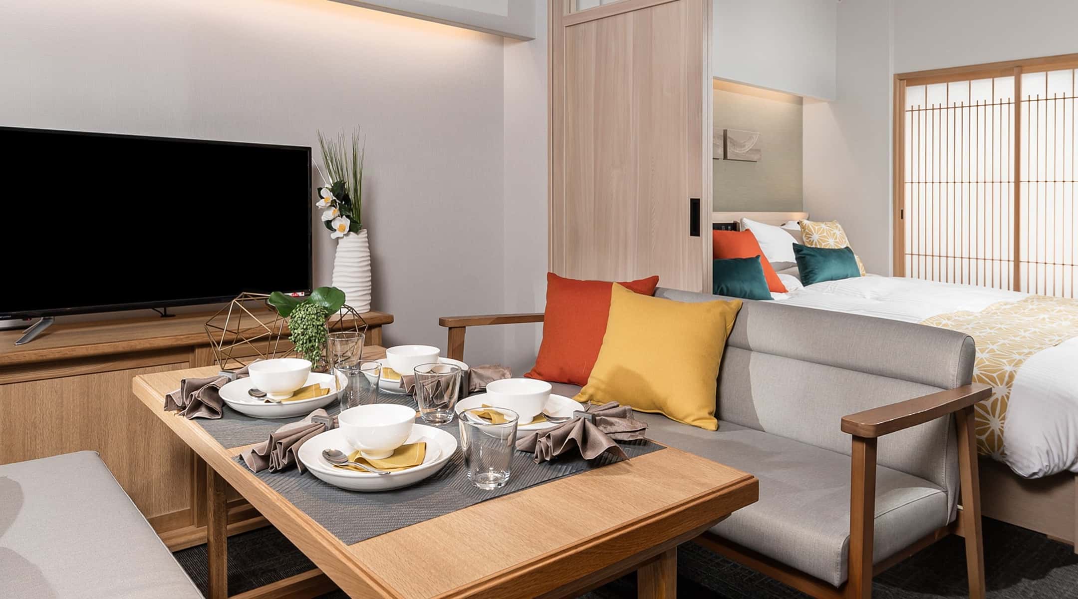 所有房間均配備廚房、廚具與餐桌。讓你在旅途中也宛如置身家中般舒適愜意。