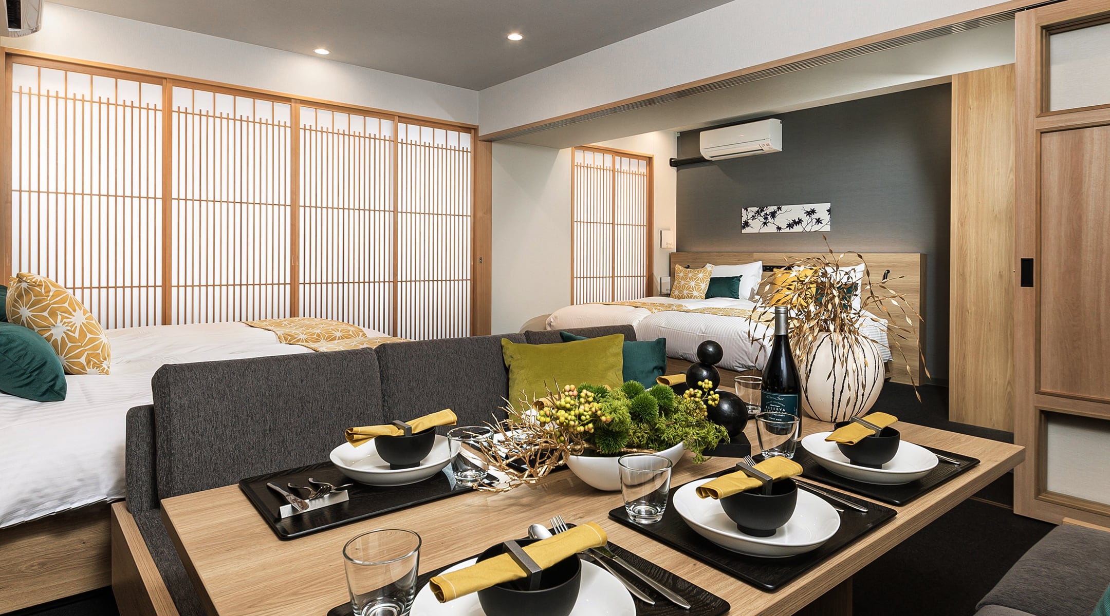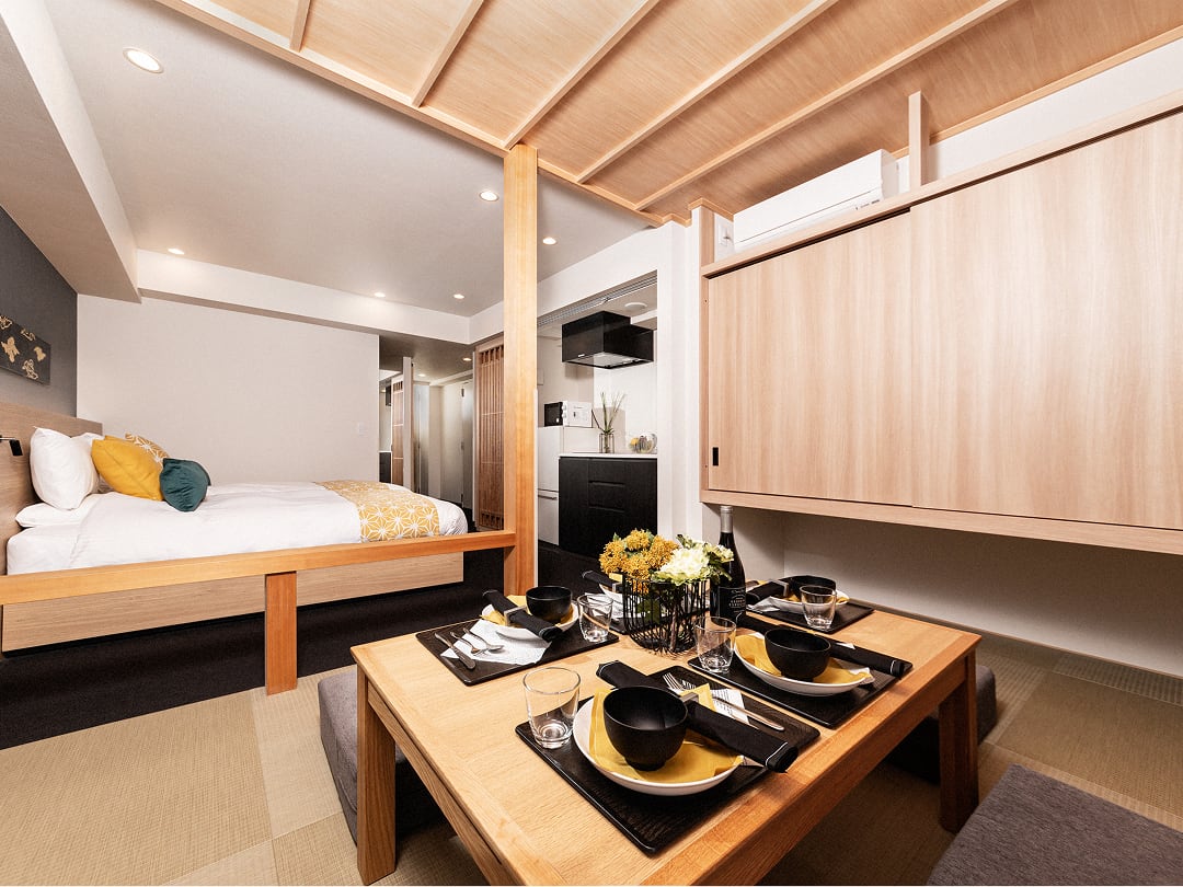 所有房間均配備廚房、廚具與餐桌。讓你在旅途中也宛如置身家中般舒適愜意。