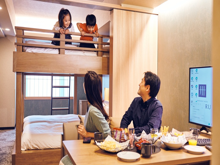 大人小孩都能盡情享受歡樂時光的雙層床房型。