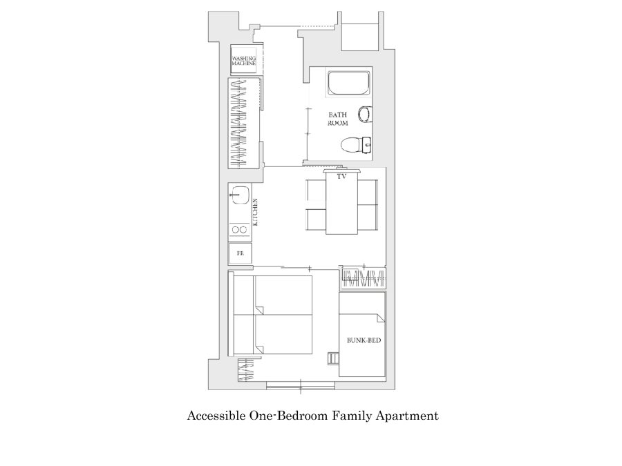 房間走道寬敞,擁有足夠迴轉空間,即使乘坐輪椅的客人也能享有安全舒適的住宿環境。浴室也採用了無障礙的系統式衛浴。