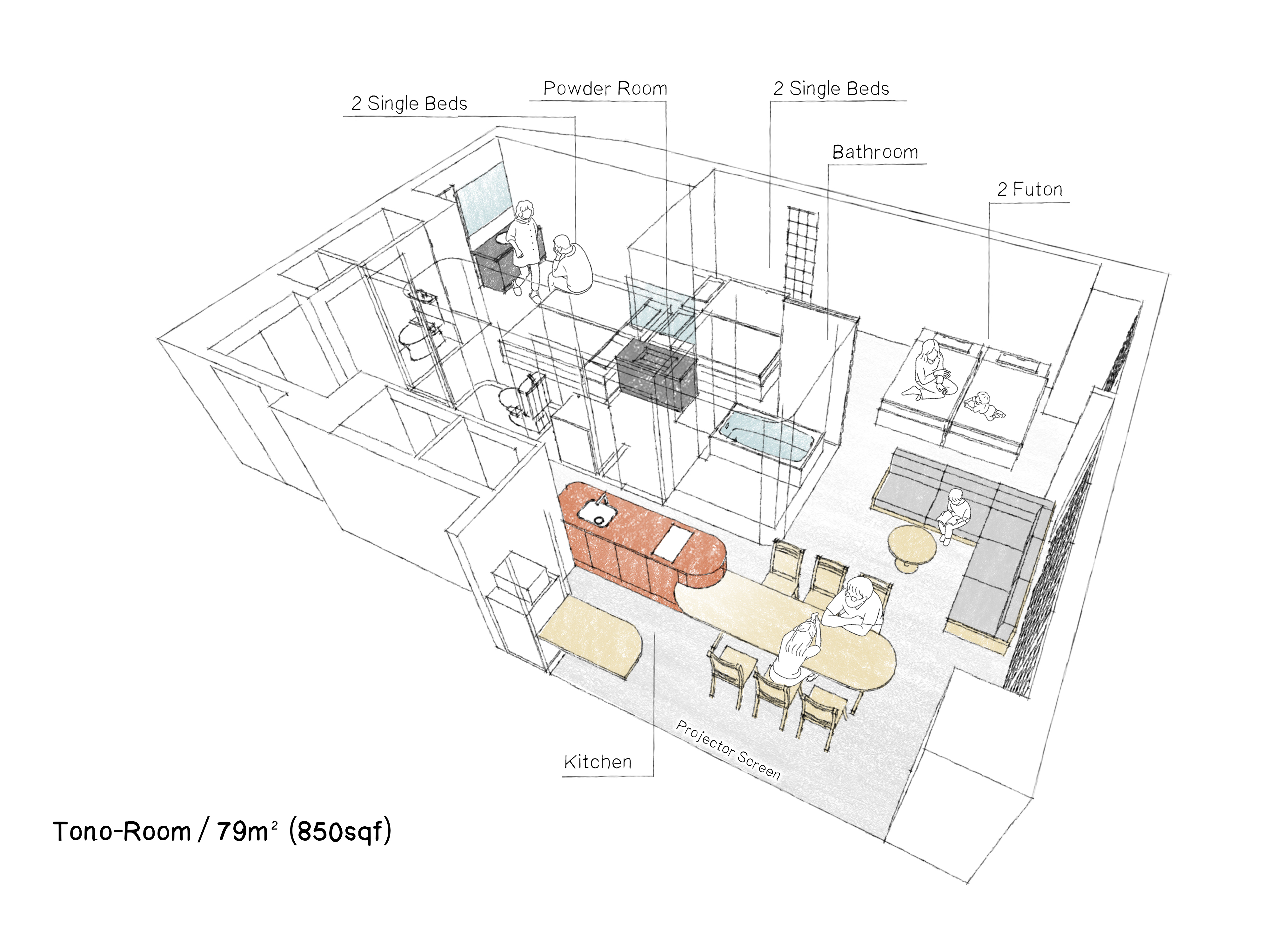 所有房間均配備廚房、廚具與餐桌。讓你在旅途中也宛如置身家中般舒適愜意。