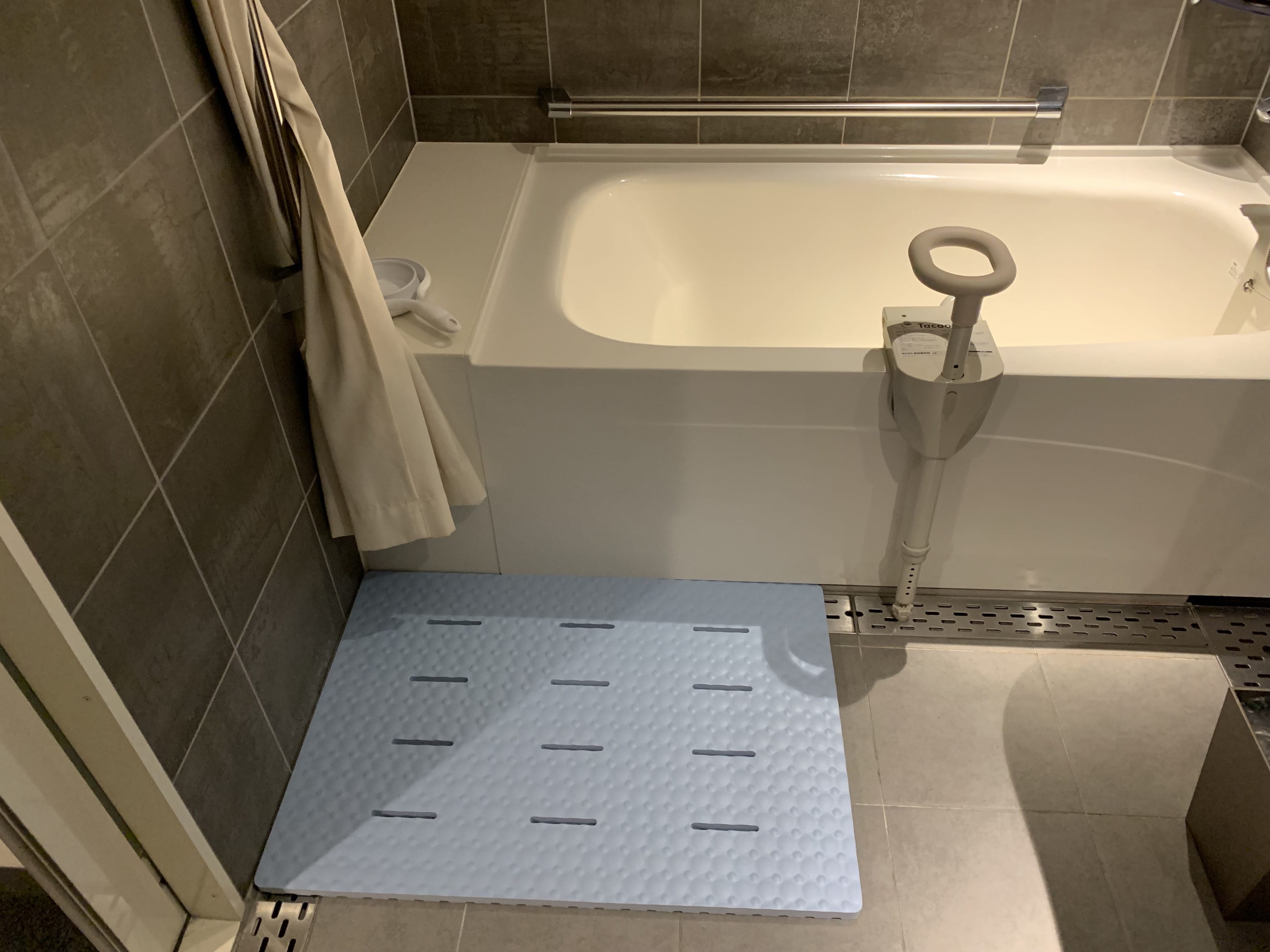 浴室則是備有淋浴區域的一般家庭用大小。飯店內也有能夠預防身體著涼的浴墊可供租借。(由於數量有限,有需要的客人請事先聯絡前往住宿的飯店)