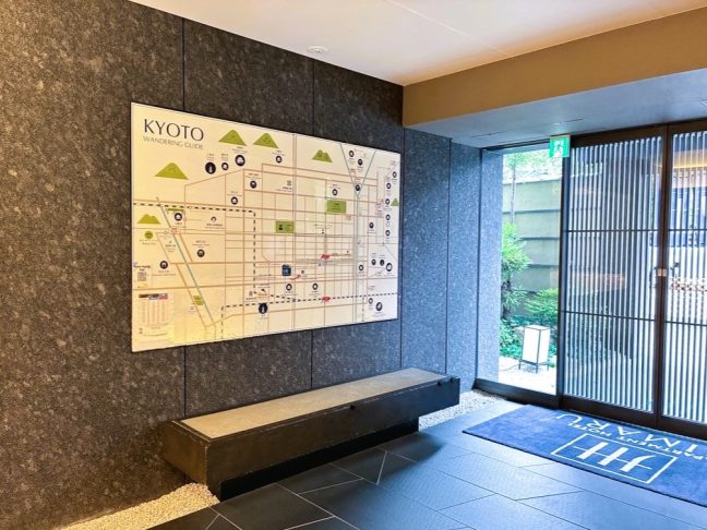 MIMARU京都 西洞院高辻的大廳裡設有大型區域地圖,方便住客規劃每日行程。若有任何疑問,也可隨時向前台員工諮詢,我們很樂意為你建議周邊的景點與好去處。