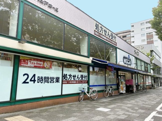 從分館步行3分鐘即可抵達24小時營業的藥妝店,無論清晨或深夜,如遇突發身體不適,或者輕微受傷時都可以買到應急藥品。
