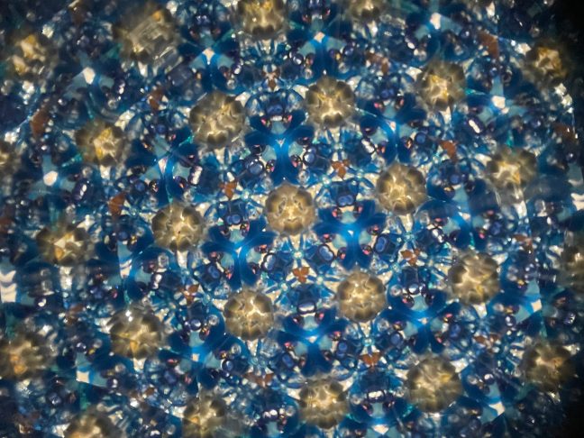 大約10分鐘就完成了! 我將左右兩邊的零件放入不同的顏色組合。 透過小小的觀察孔看到的畫面,閃閃發光,非常美麗,讓我感到非常療癒。