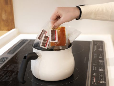 MIMARU客房配備廚房,住客可將由matoil送達的冷凍餐食以隔水加熱方式將其溫熱後享用。↑