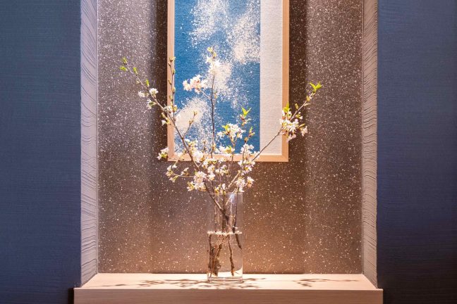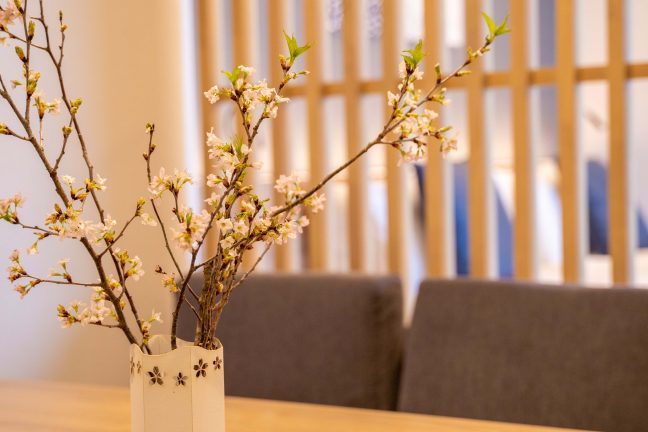 櫻花會展示在各設施內的入口玄關或是公用空間。而客房的櫻花鑑賞,採用了使用回收牛奶瓶而製作的環保花瓶。