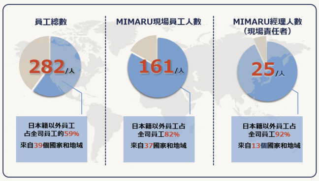 ・日本籍以外員工占全司員工的59%(員工總數282人)