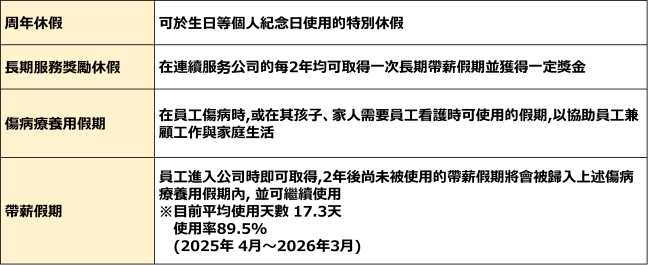■為貼合員工們的各種生活方式,提供多種休假機會。